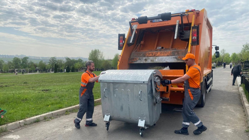 Un efort logistic deosebit a fost direcționat către Cimitirul „Sfântul Lazăr”, cel mai mare din țară, unde au fost instalate 30 de containere europene suplimentare. În zilele de 19 și 20 aprilie, fluxul masiv de vizitatori a generat zilnic câte 66 de metri cubi de deșeuri, dublu față de o zi obișnuită din timpul săptămânii. Echipele de salubrizare au intervenit zilnic pentru evacuare, reușind să mențină căile de acces funcționale și un nivel de igienă acceptabil, în ciuda numărului imens de oameni veniți să-și pomenească răposații.